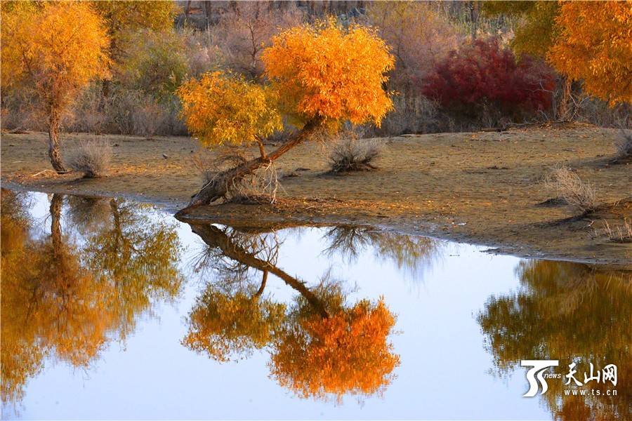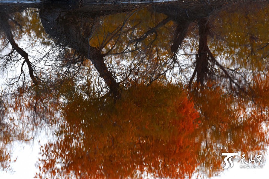 2016年10月30日,水中胡杨的倒影柔美醉人。