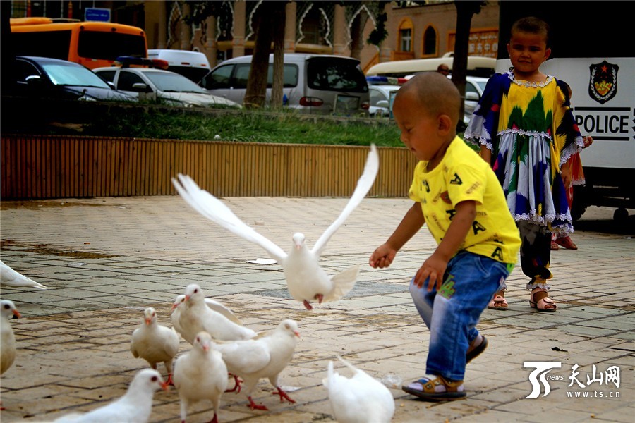 艾提尕尔清真寺广场旁玩耍的小朋友
