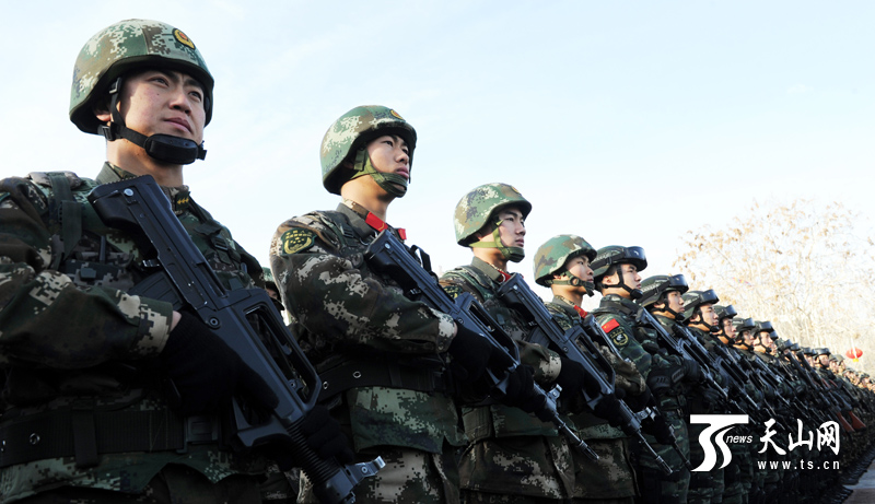 2月16日,“扬威震慑 武装拉动”自治区反恐维稳誓师大会在和田举行。(新疆日报记者卢民一 阿扎提?玉素甫江摄)