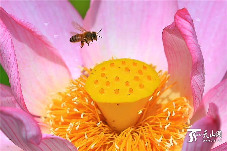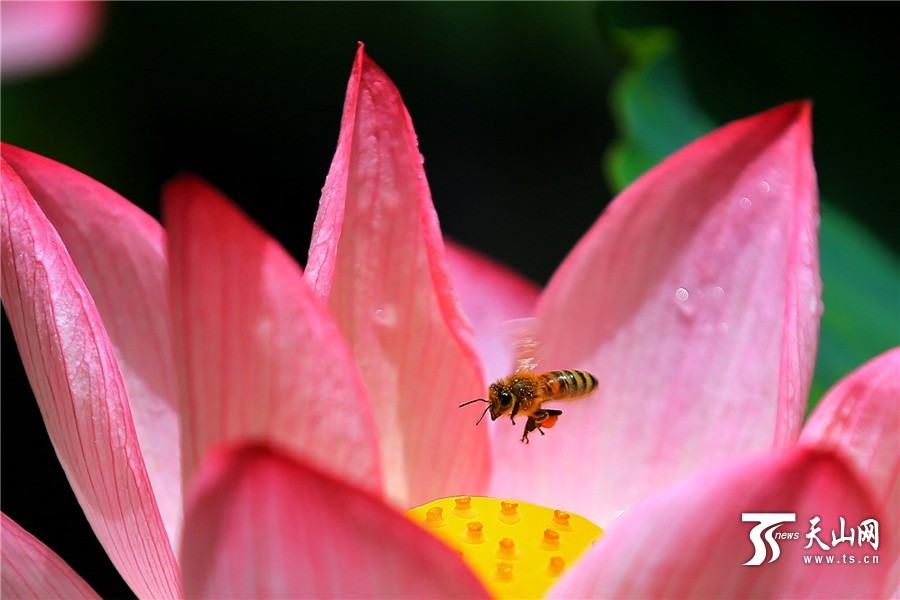 7月13日,一只夜鹭在新疆焉耆县相思湖景区的荷花塘里栖息。近日,相思湖的荷花竞相开放,艳丽的花朵和各类水鸟相映成趣,构成一幅绚丽的风景图画。