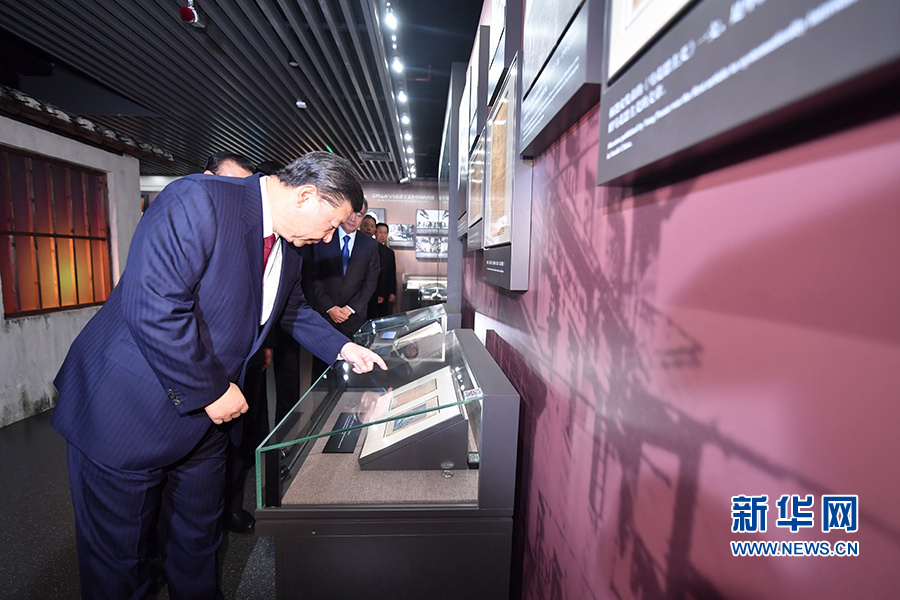 10月31日,中共中央总书记、国家主席、中央军委主席习近平带领中共中央政治局常委李克强、栗战书、汪洋、王沪宁、赵乐际、韩正,瞻仰上海中共一大会址和浙江嘉兴南湖红船。这是31日上午,习近平等在上海中共一大会址纪念馆参观。新华社记者 兰红光 摄