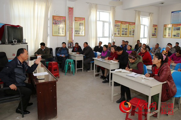 新疆人民政府办公厅住喀什地区疏勒县牙甫泉镇加依托格拉克村掀起学习十九大热潮。库尔班江·尤努斯 摄