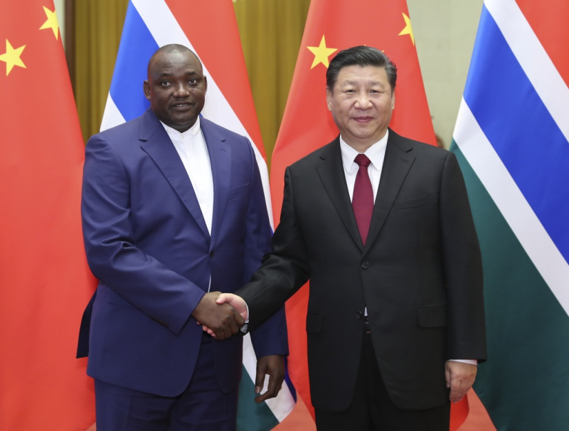 习近平指出,去年3月,中国同冈比亚实现复交,两国关系开启了新的篇章。事实证明,冈方作出同中国复交的决定,顺应时代发展潮流,符合两国和两国人民根本利益,是正确的选择。一年多来,双边各领域交流合作全面推进,合作成果切实惠及两国人民。