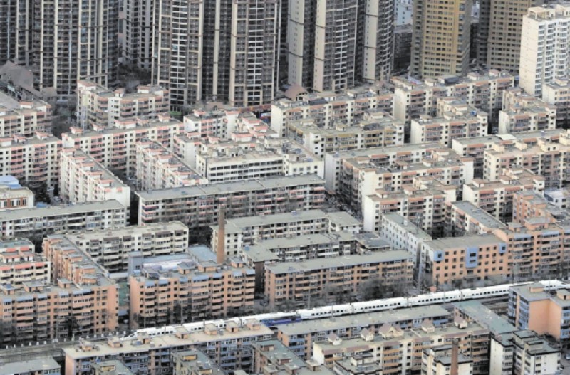 一列动车组列车从甘肃省兰州市城区驶过(2月16日摄)。
